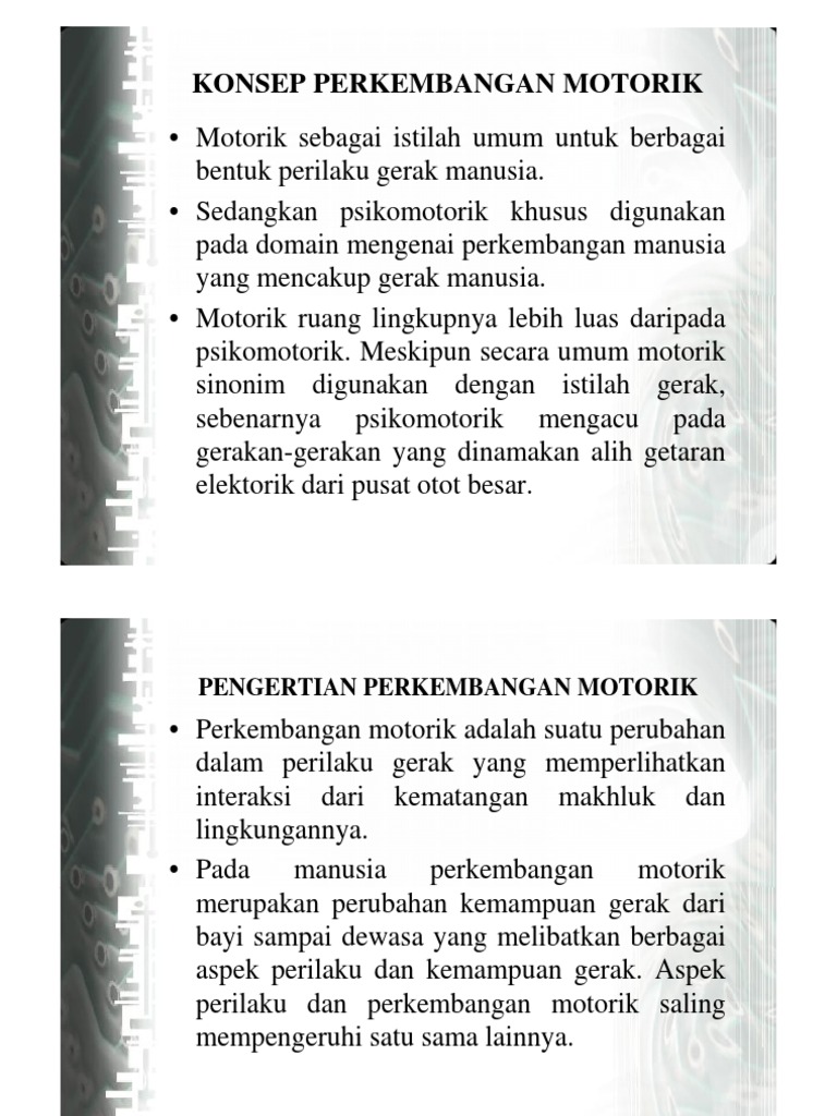 • motorik sebagai istilah umum untuk berbagai bentuk perilaku meskipun secara umum motorik sinonim digunakan dengan istilah gerak, sebenarnya.